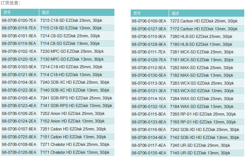 EZdisk固相萃取滤器是一款新型的滤器式固相萃取盘,它将EmporeTM固相萃取盘组装在实验室最常用的滤器中,从而使固相萃取变得如过滤一样简单方便。EZdisk固相萃取滤器可以在自动化设备、正压或者负压固相萃取装置上使用。最大上样速度可以达到100mL/min。