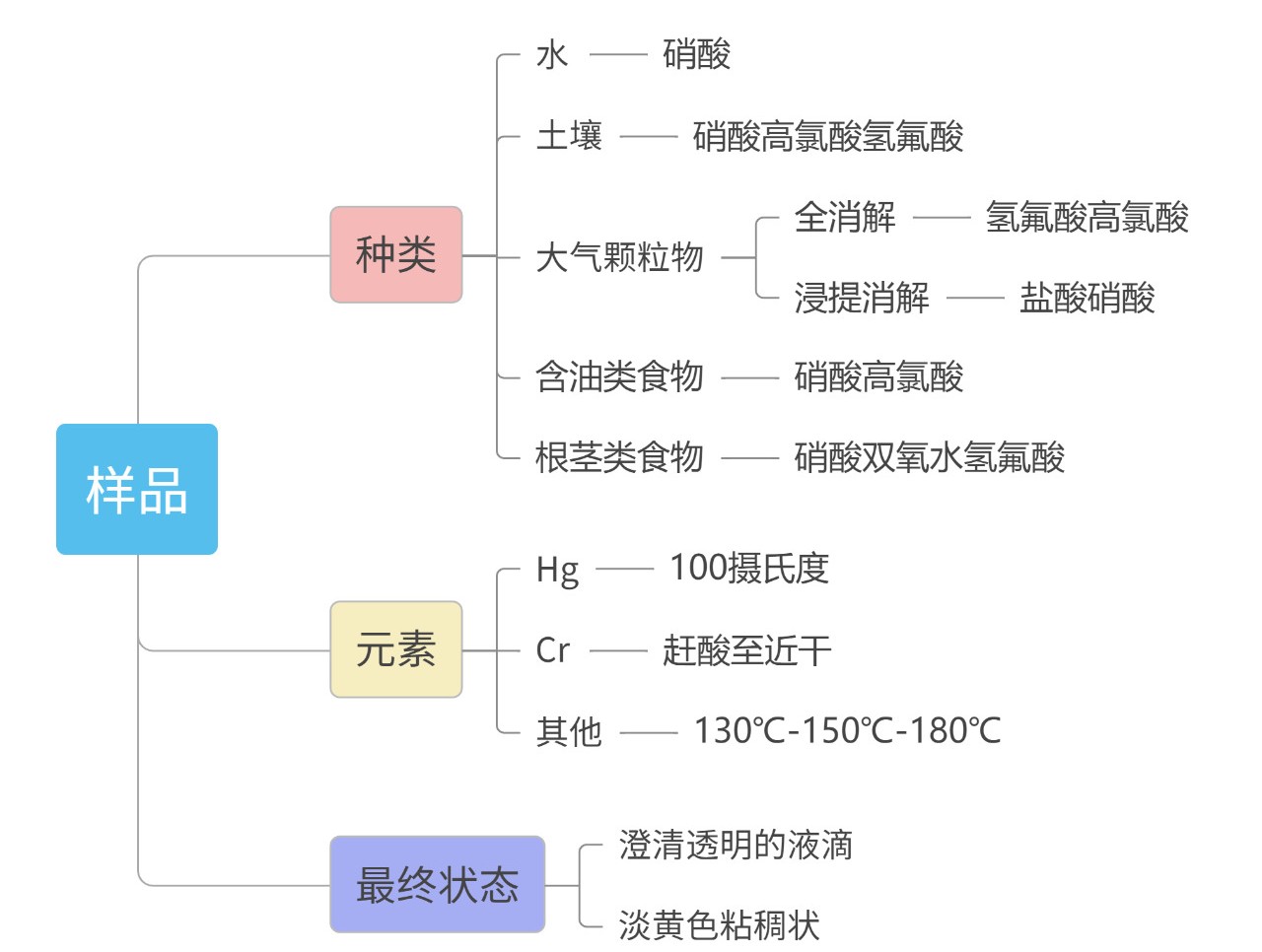 最后师兄再送你一张样品消解的思维导图,让你更轻松地掌握样品消解的诀窍。