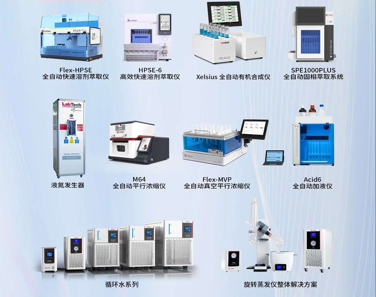 今年,浩博体育app继续展出了多款主打产品,包括浩博体育app旋转蒸发仪整体解决方案、循环水冷却系列、FLEX-MVP 全自动真空浓缩仪、Xelsius 全自动有机合成仪等当家产品。