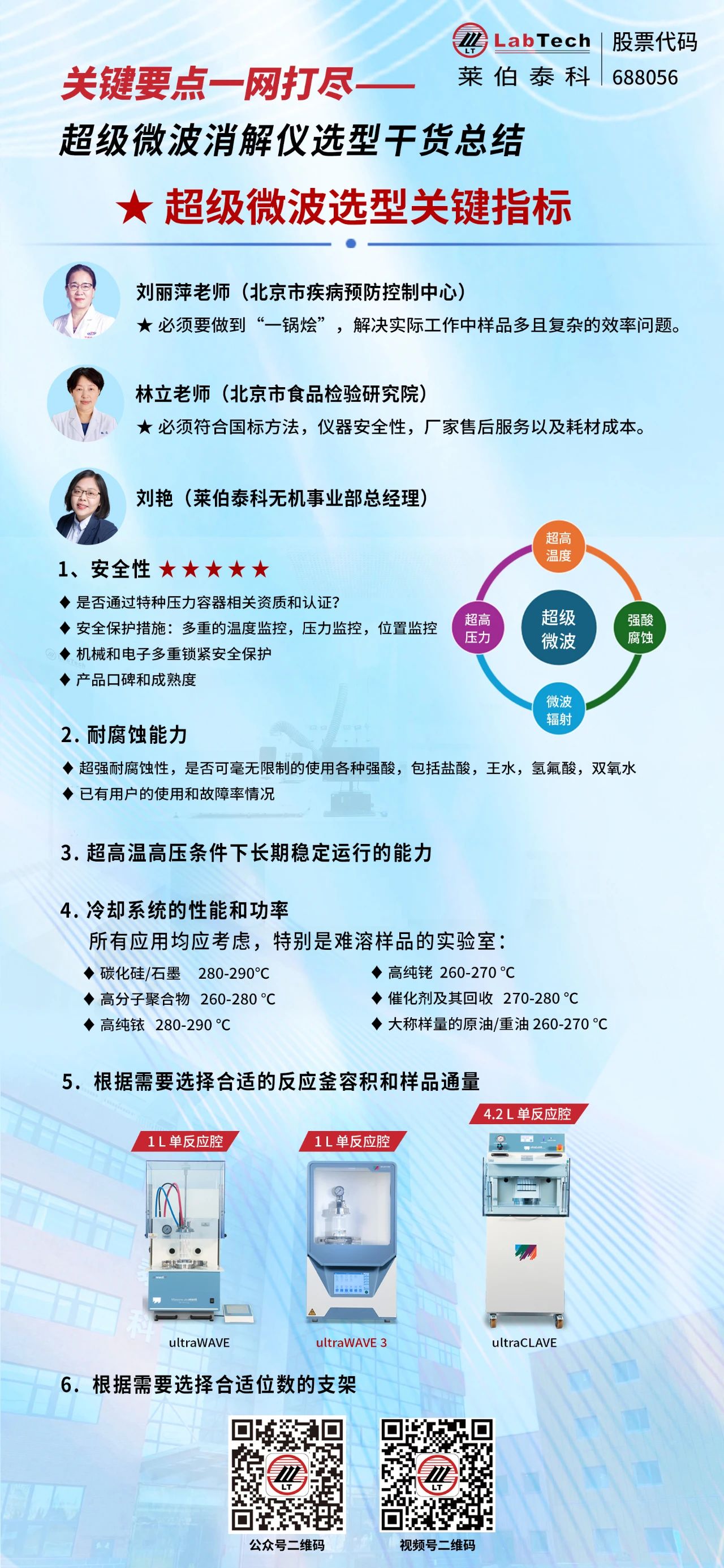 2024年3月20日,在“超级微波消解仪选型直播”活动中,北京市疾控中心刘丽萍、北京市食品检验研究院仪器室主任林立与浩博体育app无机事业部总经理刘艳一起揭秘了超级微波的技术真谛,探讨了选型要点,现将直播中的干货总结以飨读者。
