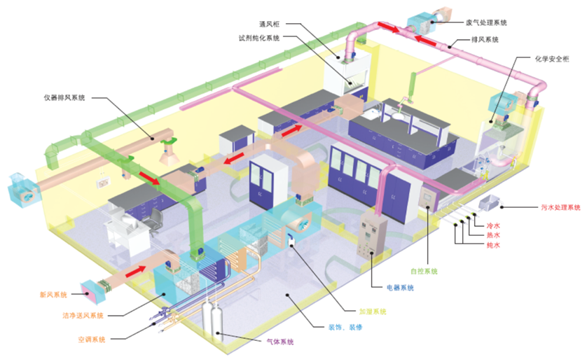实验室设计规划是一项复杂系统工程,涉及专业众多,更需要同时精通实验室使用知识和建筑知识作为技术基础。无论是新建、扩建、或是改建项目,都不单纯是选购合理的仪器设备与实验家具。实验室的总体规划设计包括实验室合理布局和平面设计,以及强弱电、给排水、供气、通风、空调、空气净化、安全措施、环境保护等基础设施和基本条件。