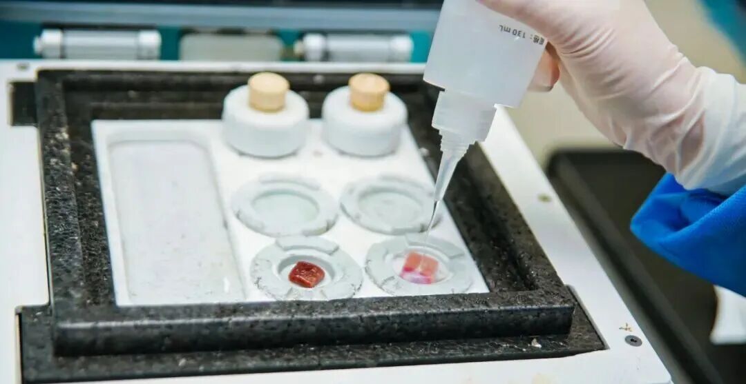 在冰冻培训时,使用了冰冻包埋机PrestoCHILL,快速的冷冻使得操作流程更加顺畅,降低了冰晶的产生使得切片质量也更好,“Face down”面下包埋技术给技术老师们提供了解决难题的方案,让我们一起为提高技术质量而努力!